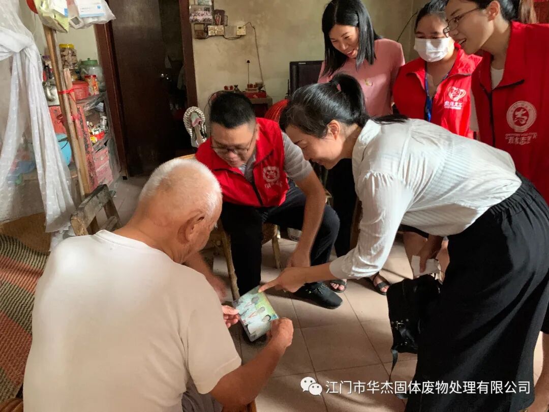 七一建党为迎接中国共产党成立99周年,弘扬党的光荣传统和优良作风,充分体现党组织对党员的关心和爱护,“七一”前夕,江门市华杰固体废物有限公司党支部党员的带领下,携带公司积极分子,与桥美村委会随行看望慰问党龄满30周年以上老党员,向老党员致以诚挚的问候,为他们送去组织的关怀与温暖。慰问老党员2020.6.230每到一处,慰问组与老党员促膝而谈,详细了解老人家的身体状况、生活情况等情况,并致以节日的问候。公司党支部书记李展洪强调,老党员是我们的宝贵财富,一辈子听党话、跟党走,心系党和人民事业,在基层发挥了先锋模范作用,我们要积极向老党员学习,继承老一辈共产党人的优良传统,要关心关爱老党员,主动帮助他们解决实际困难,真正做到思想上关心、精神上关怀、生活上关爱,力所能及地为他们的晚年生活创造良好环境。